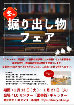 1/13(火)~ 冬の掘り出し物フェア(除籍図書の配布)