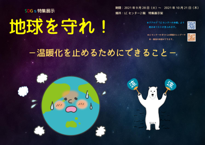 今年5月にSDGs初級編の特集展示を行いましたが、今回はSDGs企画第2弾としてテーマを絞り、地球温暖化について特集します。