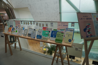(LCセンターのスロープを上がって図書館に入ってすぐのテーブル上で開催中)